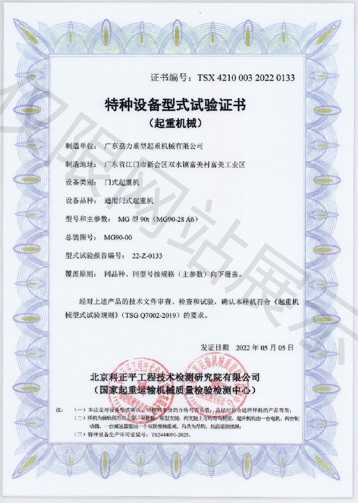 特種設(shè)備型式試驗(yàn)證書--通用門式起重機(jī)